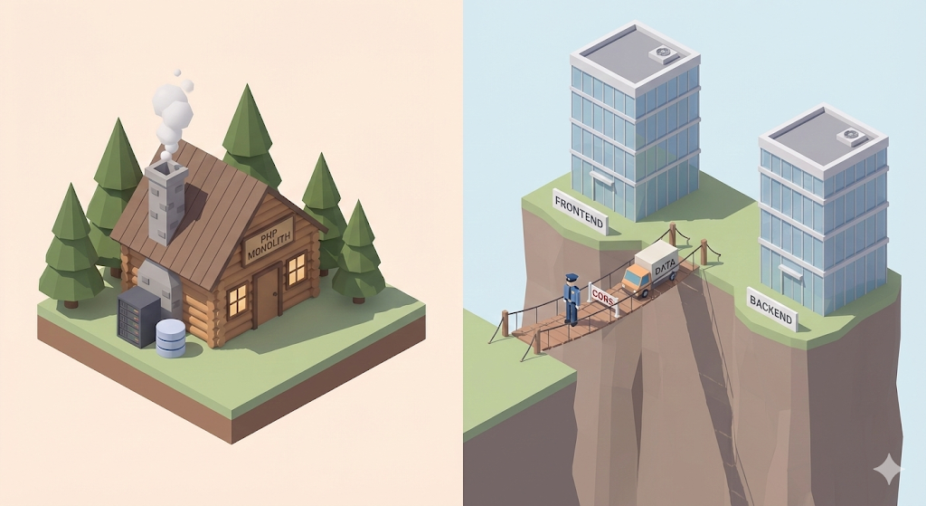 ‘웹 아키텍처와 CORS’의 개념을 PHP 시절의 SSR과 현대의 CSR 비교를 통해 설명하고, 프론트/백엔드 분리 시 발생하는 CORS 에러의 원인과 스프링 부트 해결책을 다룹니다.