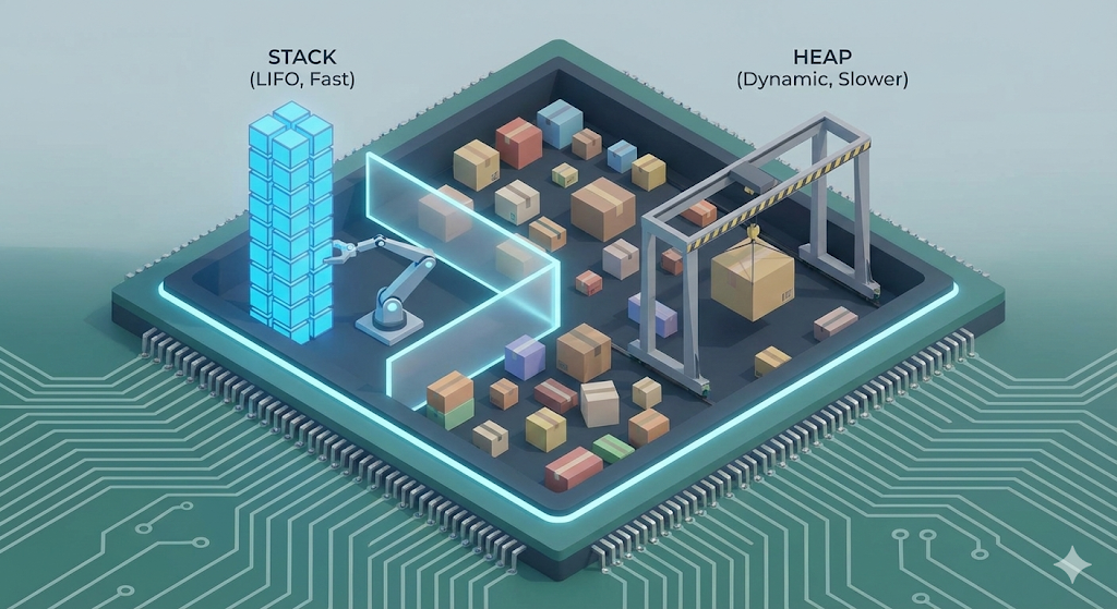 Explication de la différence entre Stack et Heap via la métaphore du centre logistique et du code. Analyse des causes des erreurs StackOverflow et OOM, et du rôle du Garbage Collector (GC).