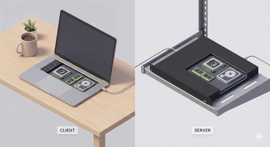 그렇다면 도대체 무엇이 내 노트북을 ‘개인 PC’라 부르게 하고, 저 투박한 컴퓨터를 ‘서버’라고 부르게 하는 걸까?